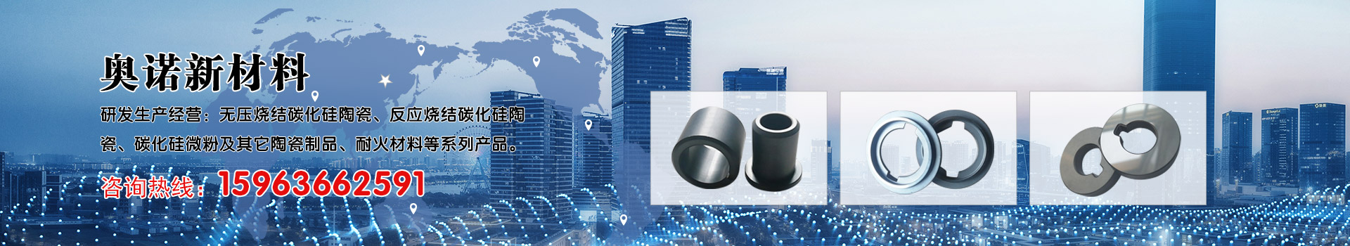 濰坊奧諾新材料有限公司坐落于美麗的山東半島中部風箏都濰坊市坊子區。公司主要以研發生產經營:無壓燒結碳化硅陶瓷、反應燒結碳化硅陶瓷、碳化硅微粉及其它陶瓷制品、耐火材料等系列產品。
